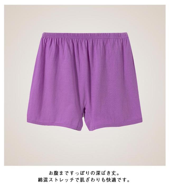 | 夏に欠かせない快適綿ショーツ。 裾メロウ仕様で太ももを締めつけないからゆったりラクちん。 脇に縫い目が無いのでごろつきにくく快適。 お腹まですっぽりの深ばき丈。綿混ストレッチで肌ざわりも快適です。 | |