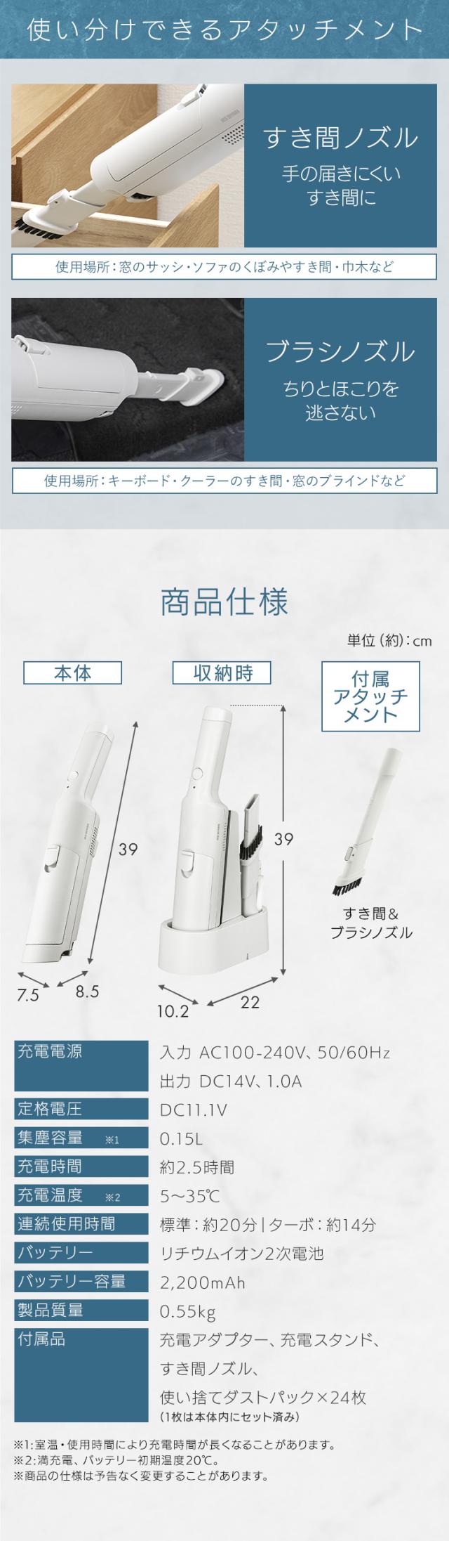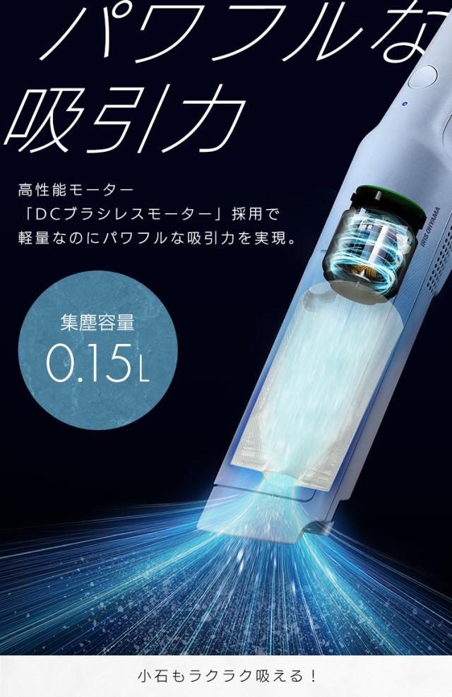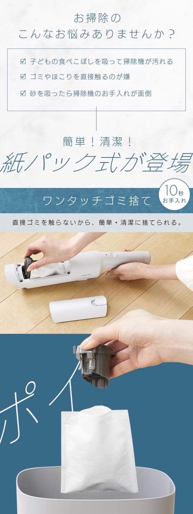 (検索用:掃除機・コードレス・紙パック式・紙パック・ハンディ・クリーナー・パワフル吸引・軽量・ごみ捨て簡単・置くだけで充電・アタッチメント付・充電式・卓上クリーナー・車用掃除機・ミニ掃除機・ハンディクリーナー・4967576785921・アイリスオーヤマ)