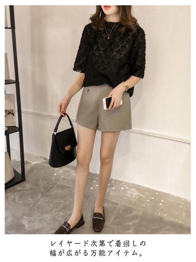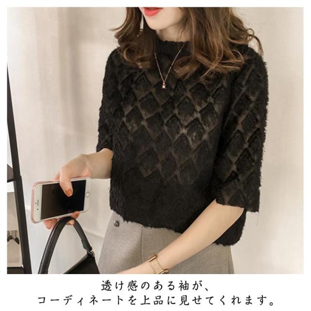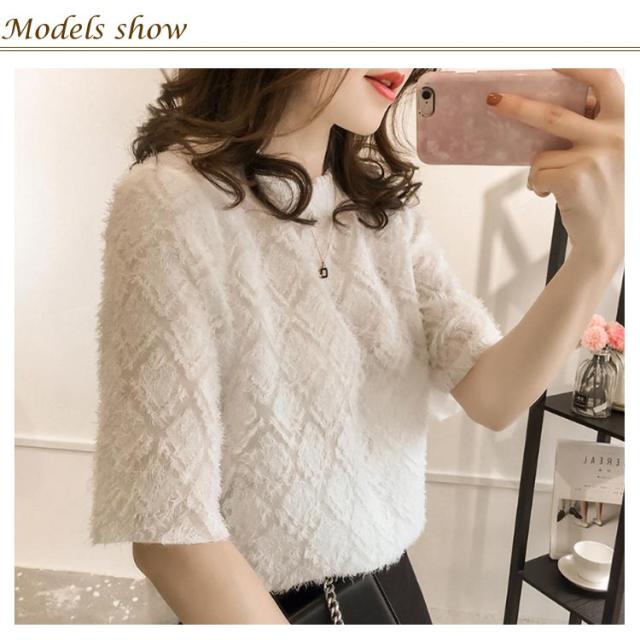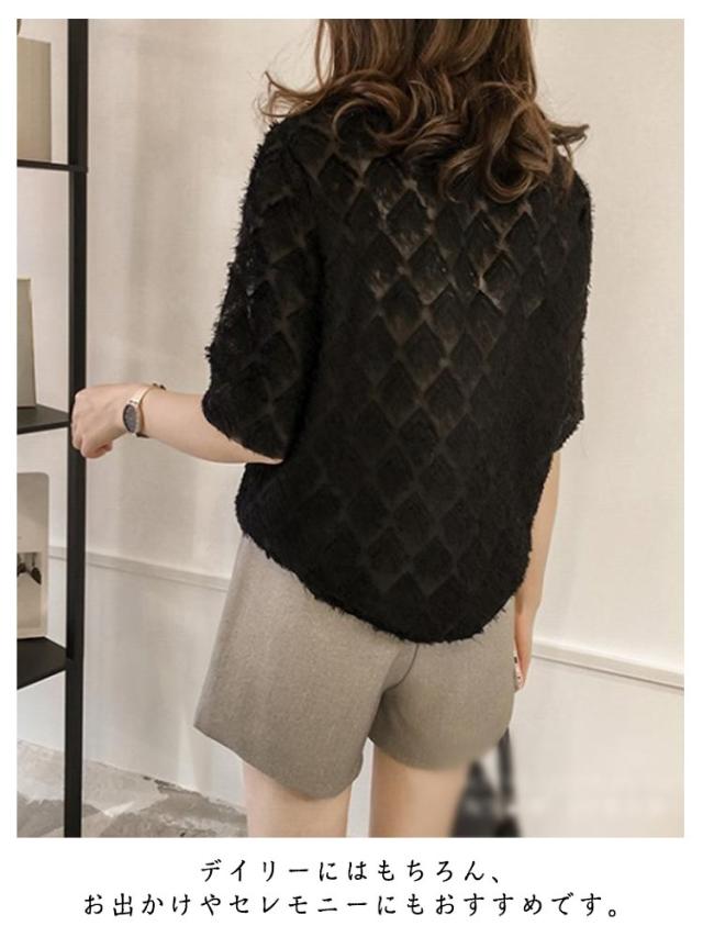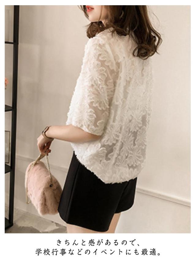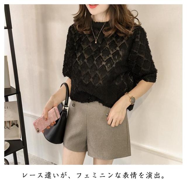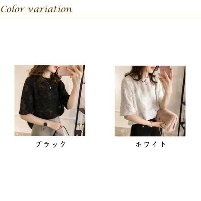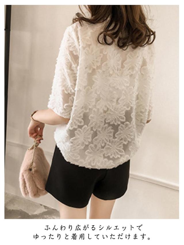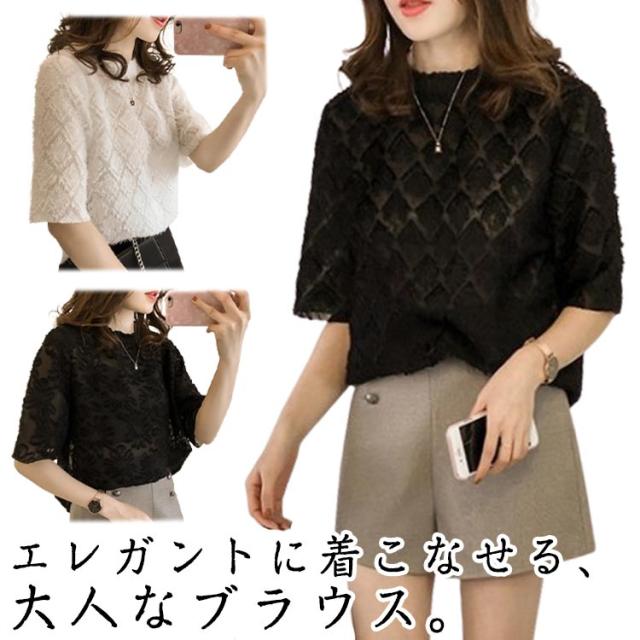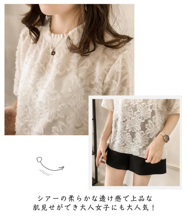 ゆったり シフォン 半袖 トップス きれいめ 五分袖 シアーカットソー フリル 薄手 ブラウス 透け感 レース シースルー 夏 シフォン tシャツ シンプル カジュアル 丸襟 おしゃれ 重ね着 韓国ファッション 通勤 OL