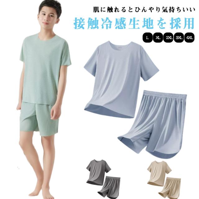 春夏用 男の子 パジャマ ルームウェア 薄手 上下セット 半袖パジャマ 春用 学生用 ジュニア 部屋着 おしゃれ 涼しい 大きいサイズ ゆったり 体型カバー L-4XL パジャマ ウエストゴム ナイトウェア 快眠パジャマ シンプル