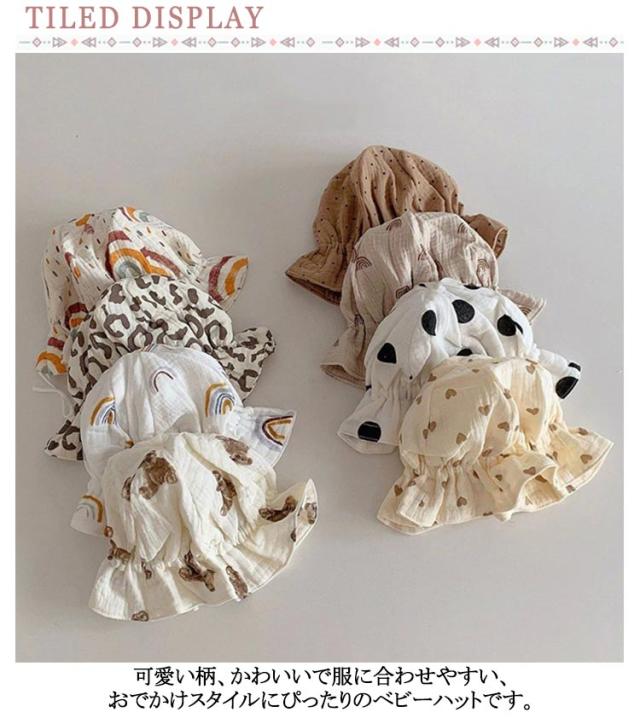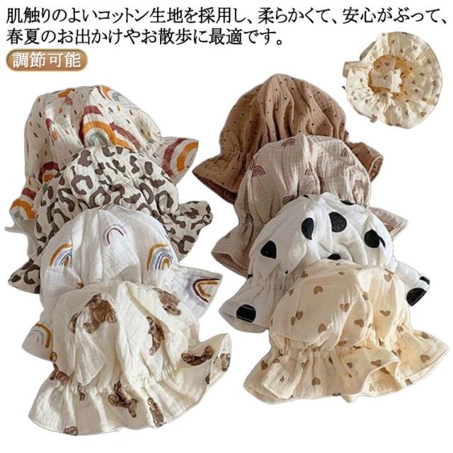 | 肌触りのよいコットン生地を採用し、柔らかくて、安心がぶって、春夏のお出かけやお散歩に最適です。 可愛い柄、かわいいで服に合わせやすい、おでかけスタイルにぴったりのベビーハットです。 小さく折りたためるので携帯にも便利です。 紐が付いていて、頭に合わせて自由に調節できます。 通園、通学、海水浴、ピクニック、登山、旅行などのアウトドア活動には大重宝、オススメ! | |