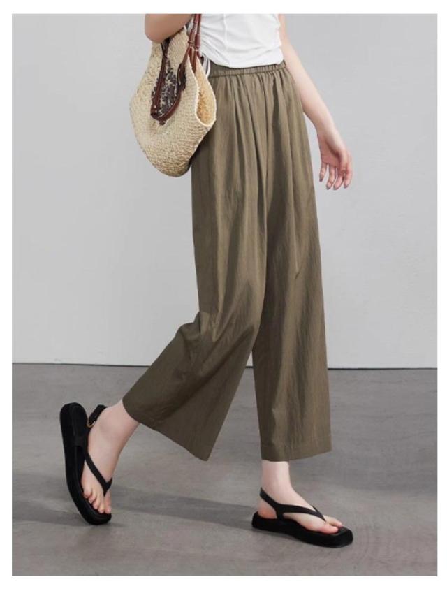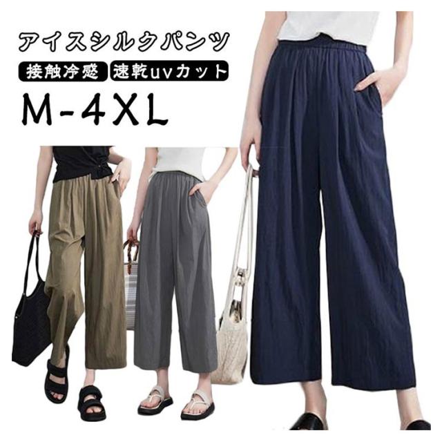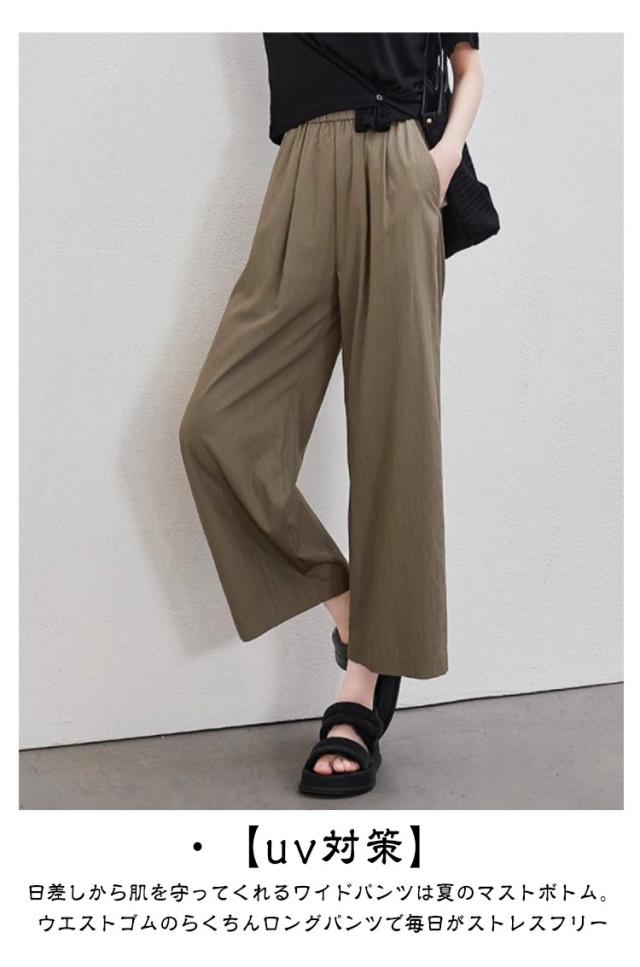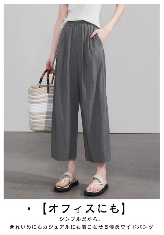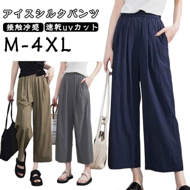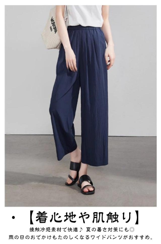 パンツ 接触冷感 ウエストゴム 8分丈 レディース 夏 9分丈 接触冷感 薄手 きれいめ uvカット ズボン イージーパンツ 春 夏 着痩せ ゆったり 速乾 アイスシルクパンツ 速乾 涼しい ワイドパンツ ストレッチ オフィス ボトムス