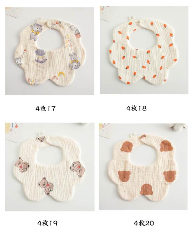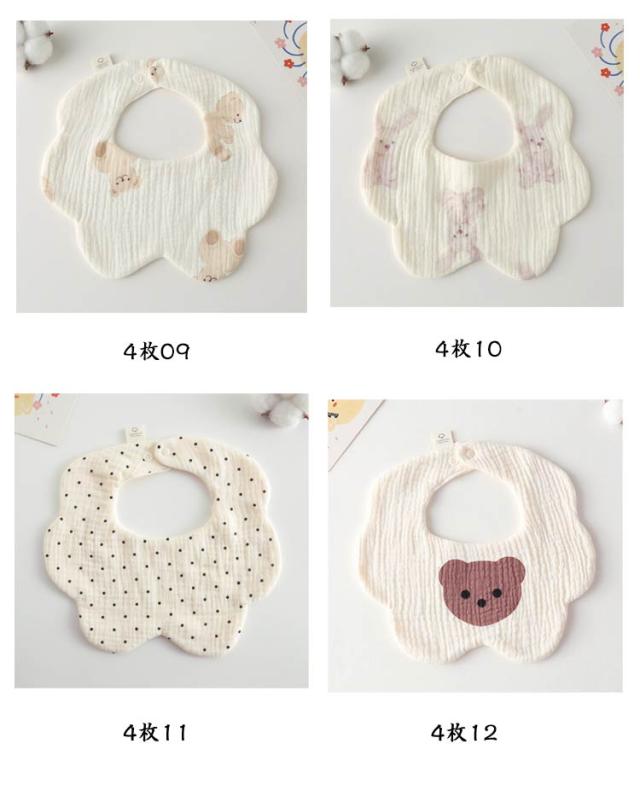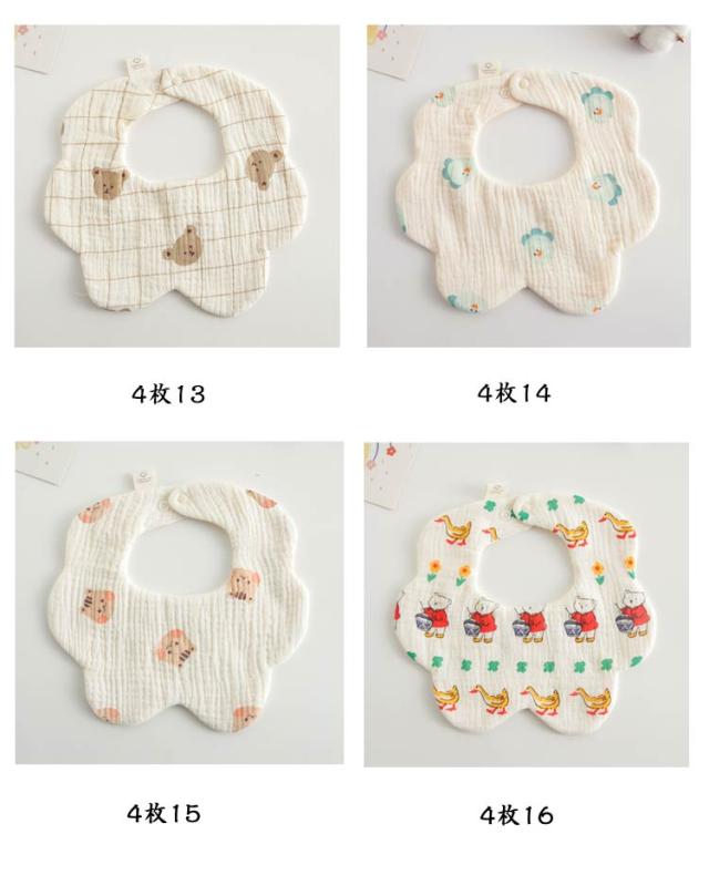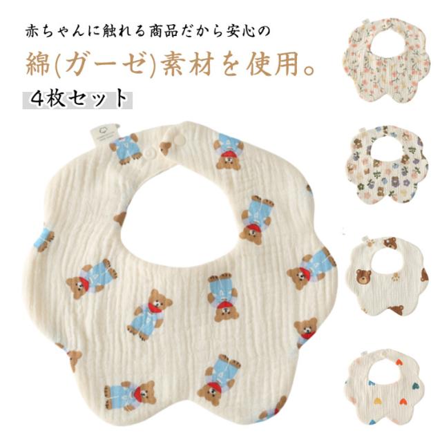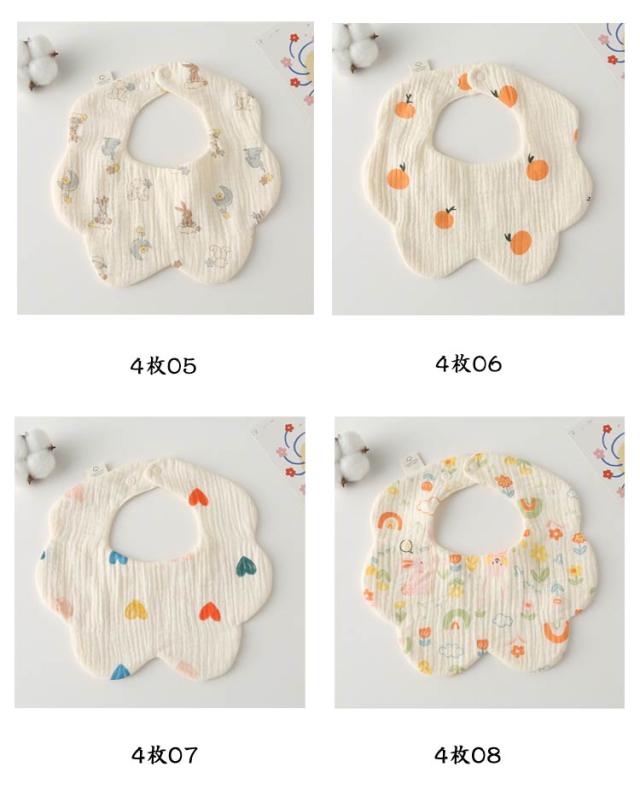 6重ガーゼ 保育園 よだれかけ スタイ 綿 4枚セット 給食 離乳食エプロン ベビー 洗濯可 お食事スタイ ベビーよだれかけ エプロン 赤ちゃん かわいい 前掛け まるいスタイ