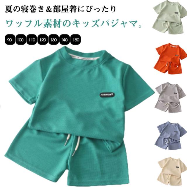 パジャマ ベビー ルームウェア パジャマ 子供服 部屋着 男の子 シンプル 女の子 キッズ Tシャツ ショートパンツ カジュアル 半袖 ウエストゴム 夏服 ワッフル ゆったり 寝巻き 90 100 110 120 130 140 150
