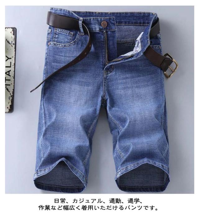 スリムフィット メンズ 夏 デニムパンツ パンツ 春夏 ショートパンツ Gパン 大人 ジーンズ デニムハーフパンツ デニム 春服 薄手 ボトムス 六分丈 ハーフパンツ 無地 ショートパンツ ストレッチ 6分丈 おしゃれ 短パン シンプル カジュアル ビジネス プレゼント