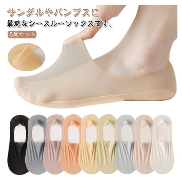 カバーソックス 脱げない ソックス 5足セット 靴下 シースルーソックス シースルー シアーソックス 夏用 抗菌 足底綿素材 透け シアー靴下 涼しい パンプス 滑り止め くつ下 蒸れない 通気性 速乾 レディース 防臭 無地 素足感覚 サンダル ソックス 肌色 黒 白
