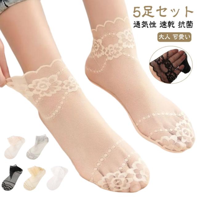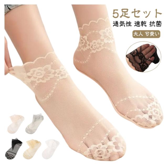 脱げない 靴下 レース くるぶし 5足セット 抗菌 花柄 レディース ソックス シースルーソックス 素足感覚 シアーソックス 透け くつ下 シアー靴下 夏用 おしゃれ 涼しい シースルー 蒸れない 通気性 速乾 レースソックス 防臭 パンプス サンダル ソックス 肌色 黒 白