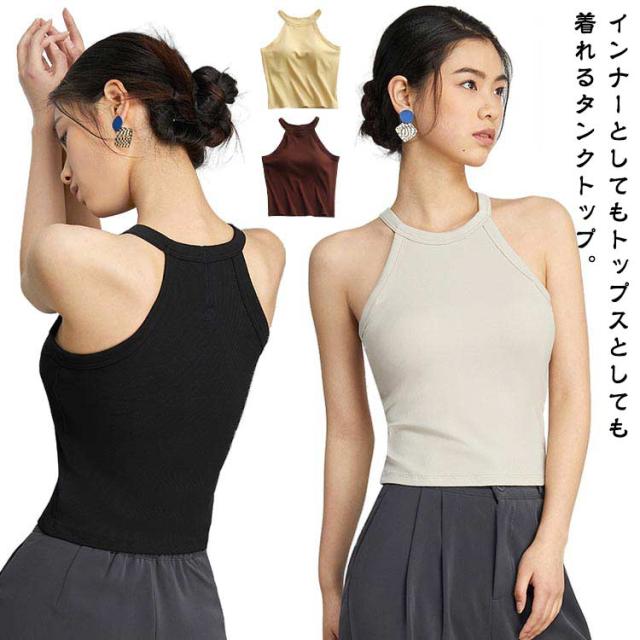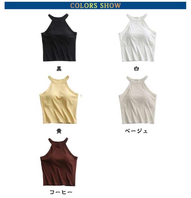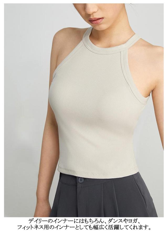レディース ホルターネック キャミソール カップ付き 無地 肌着 インナー ブラトップ タンクトップ ブラトップ ノンワイヤー カジュアル ストレッチ トップス ニット レイヤード 重ね着 リブ生地 ブラタンク アメリカンスリーブ スポーツ 春夏