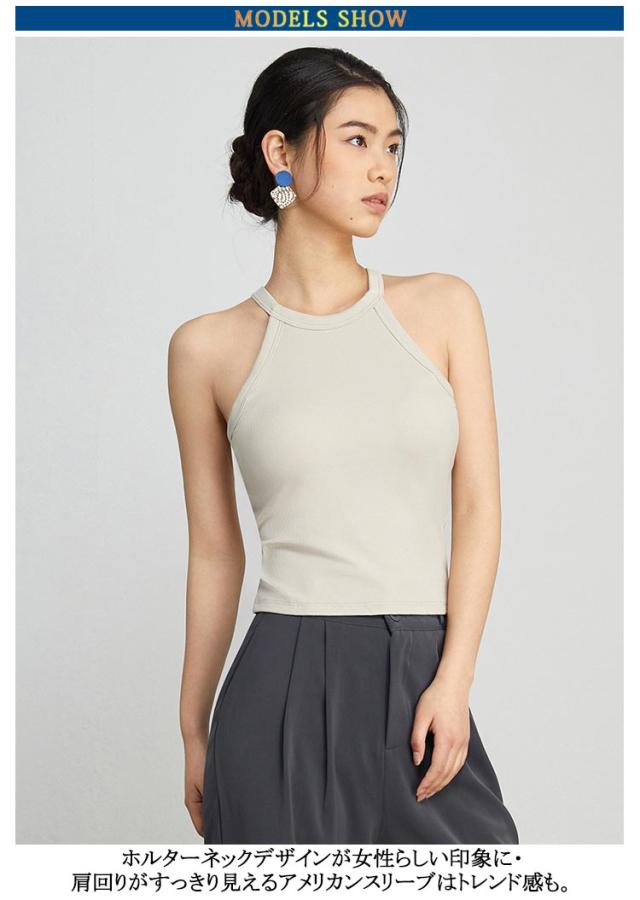 | インナーとしてもトップスとしても着れるタンクトップ。 程よくホールド感のあるカップ付きで、1枚着としても活躍! ホルターネックデザインが女性らしい印象に・肩回りがすっきり見えるアメリカンスリーブはトレンド感も 伸縮性のある素材で着心地抜群、しっかりと肉厚な素材感でデイリー使いにピッタリ! デイリーのインナーにはもちろん、ダンスやヨガ、フィットネス用のインナーとしても幅広く活躍してくれます。 | |