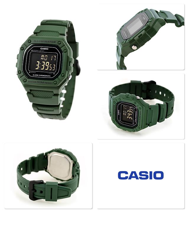 カシオ チープカシオ CASIO クォーツ 電池式 W-218H-3BV スタンダード 海外モデル ユニセックス チプカシ メンズ レディース 腕時計 ブランド カシオ casio デジタル ブラック グリーン 黒 おしゃれ 防水 かわいい プレゼント 実用的 学生