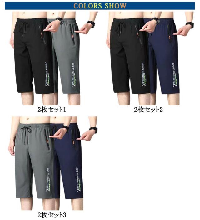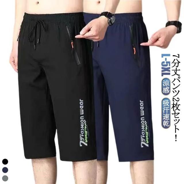 2枚セット 冷感パンツ 涼感 チノパン ひんやり ストレッチ ハーフパンツ 七分丈 夏 アイスシルク パンツ メンズ イージーパンツ 接触冷感 涼しい 冷感パンツ クロップドパンツ 吸汗速乾 カジュアルパンツ 大きいサイズ スポーツ アウトドア 無地 ゴルフパンツ
