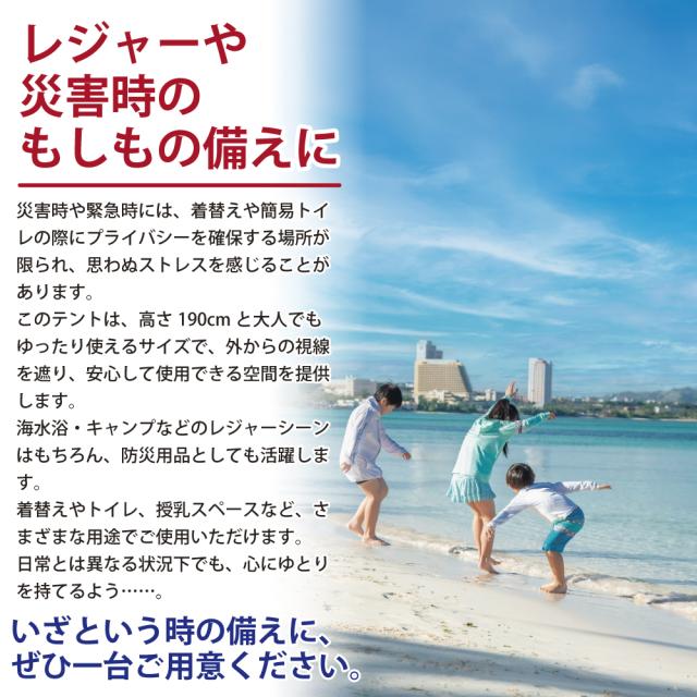 レジャーなどでの屋外のきがえをはじめ、簡易トイレ、災害時など幅広く活躍。