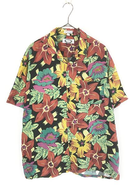 古着 90s Weekend Only ボタニカル フラワー アート 総柄 開襟 レーヨン ボックス シャツ 半袖 L