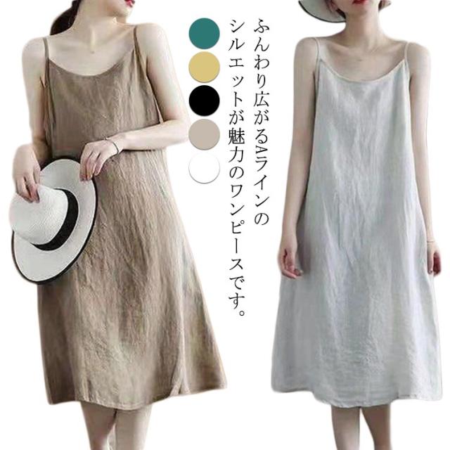 タンクトップ ワンピース 重ね着 ワンピース 夏 インナーワンピース 春 インナー キャミソール 無地 ノースリーブ キャミワンピース 夏 レディース ワンピ ワンピース リネン ロングワンピース ワンピース マキシ 無地 体型カバー aライン L XL 2XL 3XL