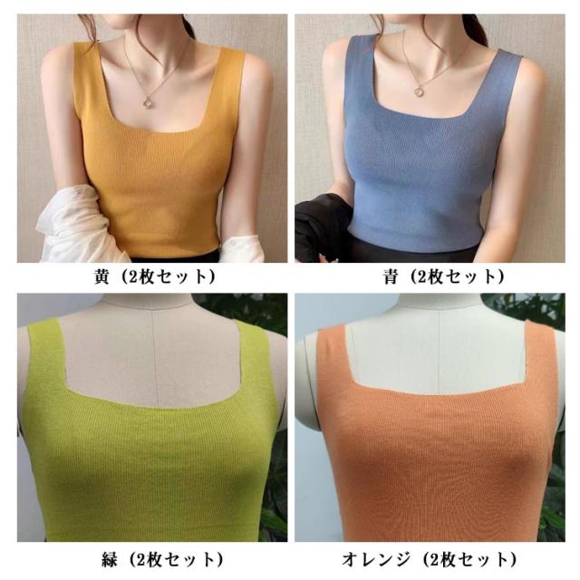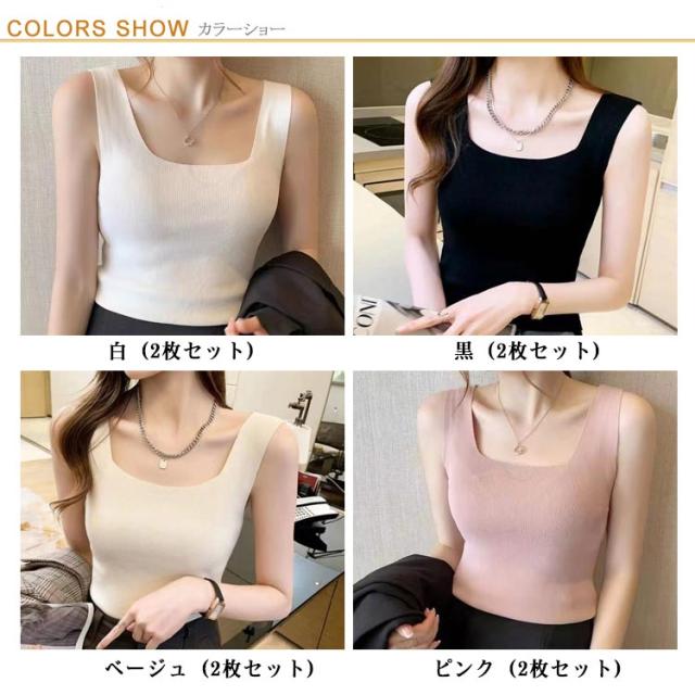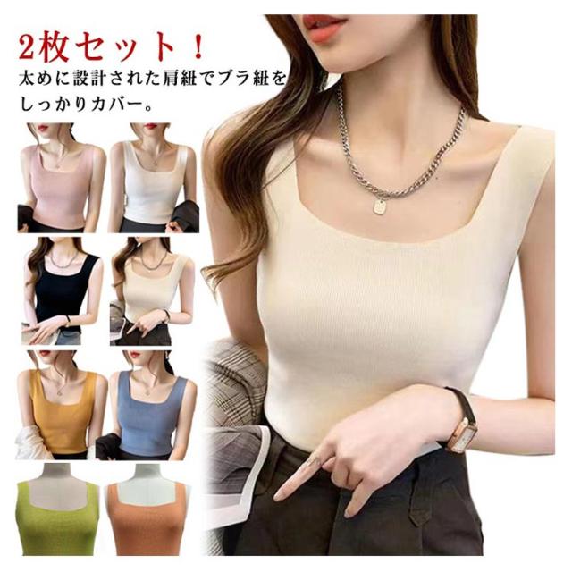 2枚セット スクエアネック 透けにくい タンクトップ レディース ストレッチ 2枚セット 涼感 レディース スクエアタンクトップ 速乾 ブラ紐 インナー 吸汗 カットソー キャミソール ノースリーブ シームレス スリム 薄手 下着 肌着