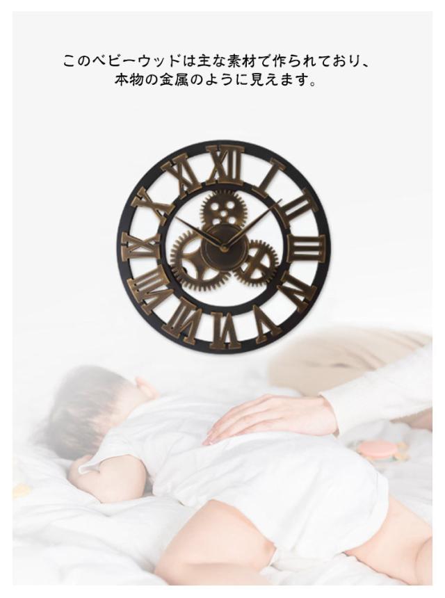 雑貨 欧風 歯車 ローマ数字 時計 電池式 壁掛け時計 歯車 アンティーク 木製 おしゃれ レトロ デザイナーズクロック ウォールクロック 静音 アナログ 壁掛け ウッド 木 アメリカンクロック インテリア 壁飾り かっこいい モダン