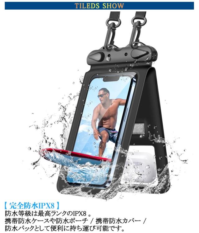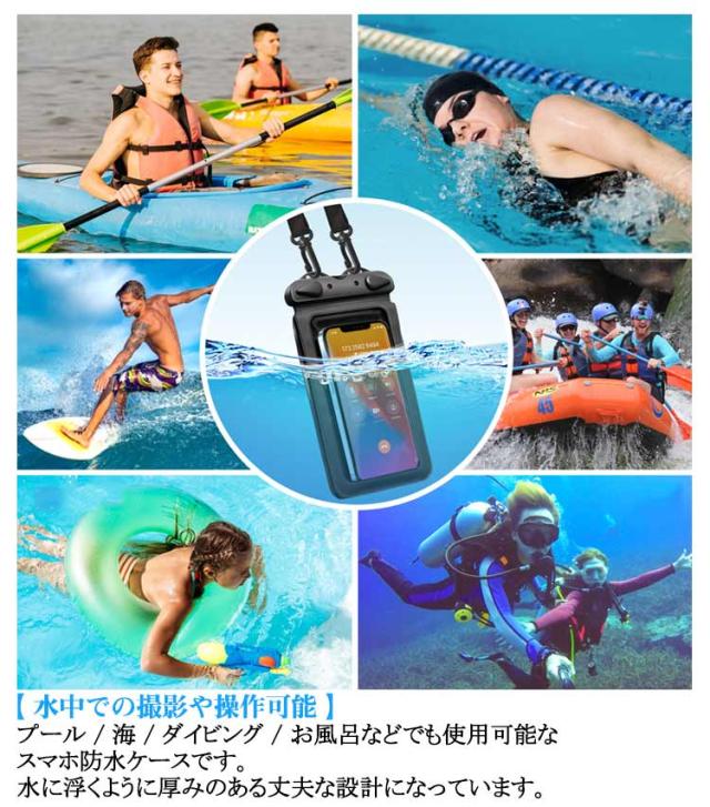 | 【便利な 2way 仕様 小物収納ポケット付 】 スマホ防水ケース と 小物入れ が一体になっていて、 小銭 や コイン を同時に持ち歩けます。 コインケース としても利用可です。 【 完全防水 IPX8 】 防水等級 は最高ランクの IPX8 。 携帯防水ケース や 防水ポーチ / 携帯防水カバー / 防水バック として便利に持ち運び可能です。 【 水中 での 撮影 や 操作可能 】 プール / 海 / ダイビング / お風呂 などでも使用可能な スマホ 防水ケース です。 水に 浮く ように厚みのある 丈夫 な設計になっています。 【 FACE ID や通話にも対応】 防水 スマホケース をつけたまま通話 や 顔認証 が可能です。首掛け やショルダー 掛けに対応した ストラップ が付属しています。 【 7.5 インチまでの スマホ 対応】 で最大 6.9 インチまで対応( 使用しているスマホケースの影響あり) iPhone 13 14 15 16 Pro や各種 Android ( アンドロイド ) の端末に対応しています。 | |