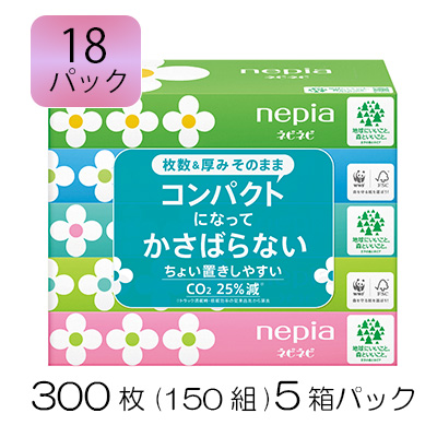 ネピア ネピネピ ティシュ ペーパー 300枚(150組) 5箱×18パック 送料無料 00021