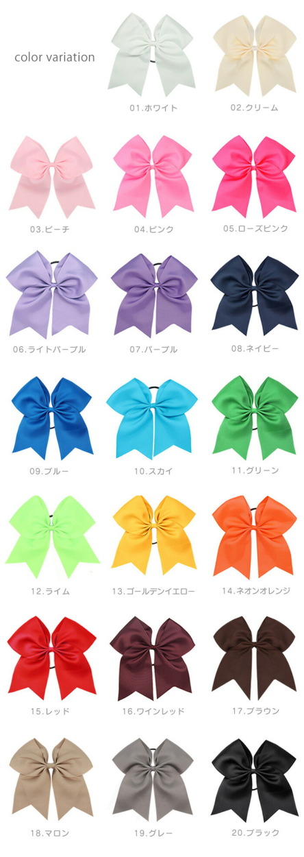 リボンゴム ヘアアクセサリー りぼん ヘアゴム キッズ 大人チアリーダー風 ポニーテール 無地リボン 20色 hf1033 t-45