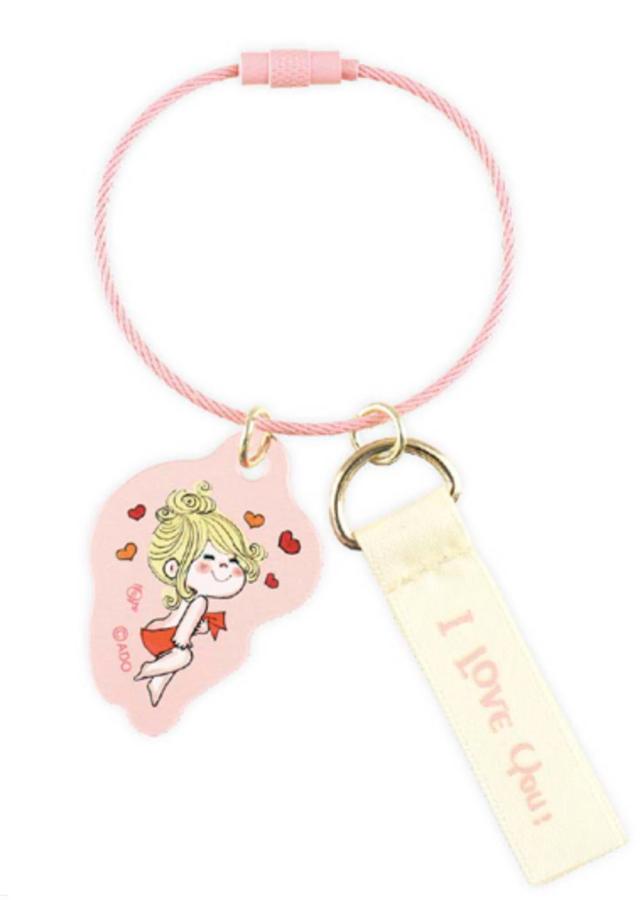 【送料無料】【ADO MIZUMORI】【水森亜土】2チャームワイヤーキーリング【ピンク】【あどちゃん】【画家】【キーホルダー】【キーリング】【チャーム】【鍵】【雑貨】【グッ