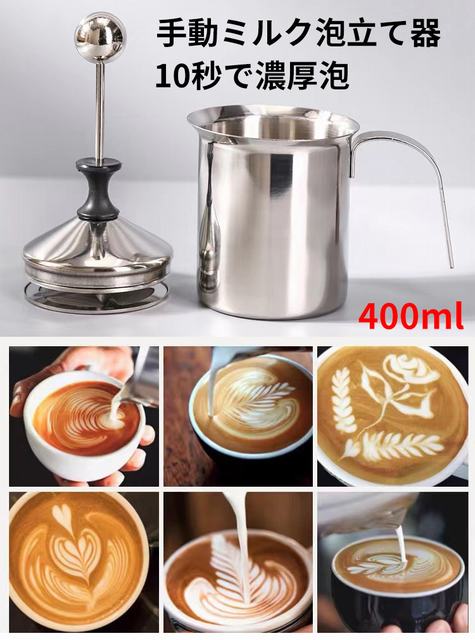 手動ミルク泡立て 器泡立て 手動泡メーカー ミルク泡立て ステンレス ダブルメッシュ 400ml