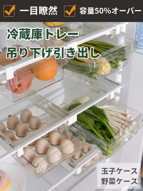 冷蔵庫トレー 吊り下げ収納ケース 収納ボックス たまご 果物 野菜収納 台所 キッチン収納 パントリー クリアケース引きだし ひきだし 一目瞭然