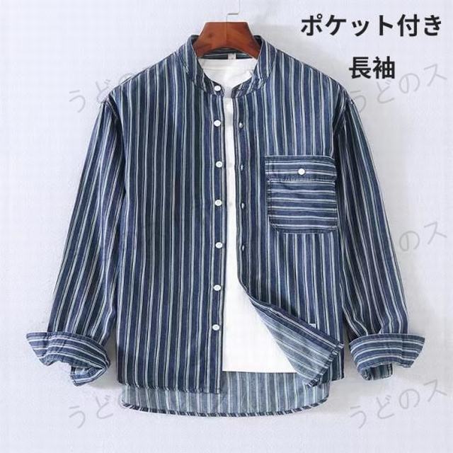 メンズ長袖シャツ、カジュアルシャツ メンズ トップス ストレッチ メンズ ストライプシャツ ユニセックス ベタつき軽減