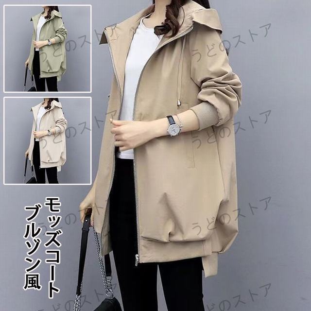 レディースモッズ、ミリタリーコート レディース アウター フード付き ミドル丈 マウンテンパーカー 無地 防風 春秋コーデ