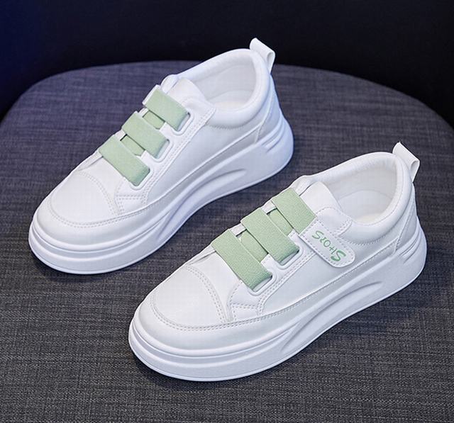 厚底スニーカー ローカット マジックテープ おしゃれ フラットシューズ バイカラー 美脚 シューズ 歩きやすい 疲れない グリーン