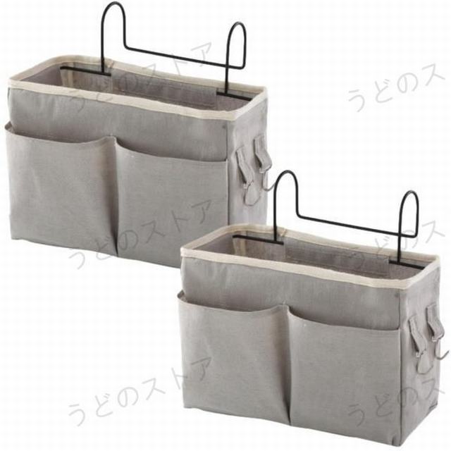 クローゼット?枠付きベッドに引っ掛けてお使いになっていただく便利なベッドサイドポケット?収納ラックです。帆布の本体にアイアンのフックを取り付けていただくだけで簡単に組み立てが可能です。フックの部分を引っ掛けると吊り下げられます。本体の前面に2個のポケット?サイドに1個のメッシュポケット?反対側のサイドにはフックが2個付いています。大きなポケットには雑誌を入れたり、小さなポケットにはリモコン?スマホを入れたり、フックにはイヤフォンなどを掛けておくことができます。《サイズ》縦 約18.5cm?横 約30cm?奥行き 約11cm(詳しくは画像にてご確認下さい)《カラー》グレー《セット内容》本体ポケット?アイアンフック
