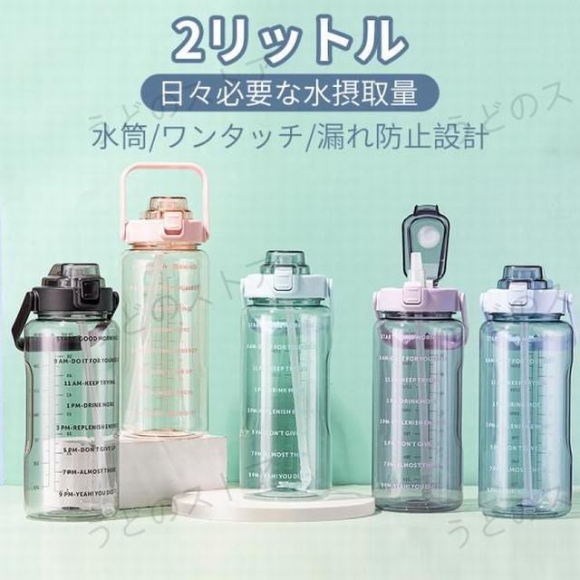 水筒 おしゃれ 2リットル 2L ワンタッチ ストロー 直のみ 大容量 運動 体操 ヨガ トレーニング 軽い プラスチック ボトル ジム 登山