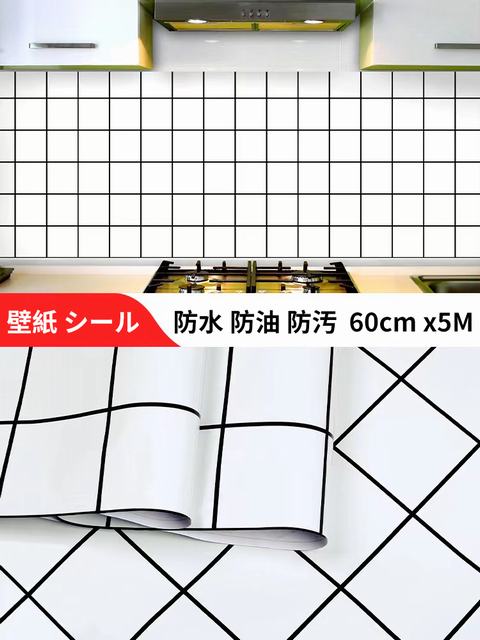 壁紙シール タイル模様 ホワイト 60cm×5m キッチンシート 防カビ 汚れ防止シート 台所 防油 耐熱 防水 リビング キッチン