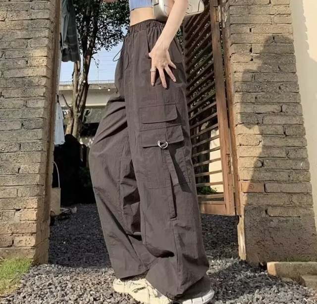 カーゴパンツ ロングパンツ ボトムス レディース ゆったり 無地 ハイウエス ウエストゴム ワイド ズボン 女性 グレー