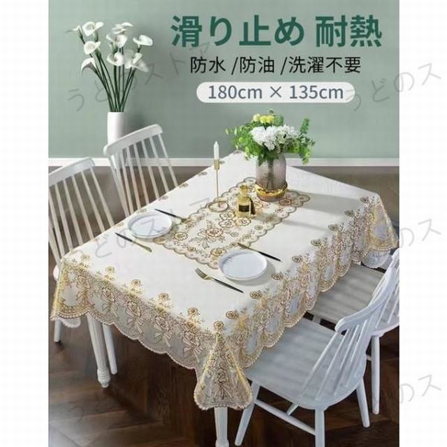 ?素材 : ポリ塩化ビニル 耐熱 : 100度サイズ: 180cm × 135cm(135x80cmのテーブルに適用します。)? 新しいテーブルでも使い古したテーブルでも敷くだけで食卓を明るくになります。? ツルツルした安っぽい生地ではなく、高級感のあるマットな手触りになっております。? 表面が特殊加工されているため 耐熱 防水 防油 防カビ機能が備わっています。? 厚みのある作りで傷にも強く跡が残りにくいです。ビニールのベタベタ感がありません。※汚れたら3時間以内に拭き取れます。? 有害なホルムアルデヒドがフリーなので、赤ちゃんのいる家庭でも安心してお使い頂けます。(新品到着時に少し匂いがございますので,少々時間が置かしたらなくなります。)