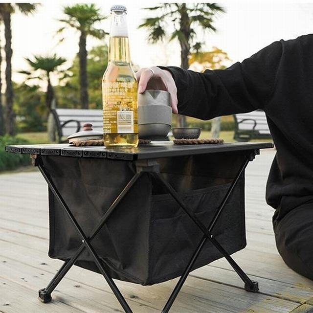 アルミ ロールテーブル 軽量 折りたたみ ローテーブル アウトドア キャンプ 小物バッグ付 持ち運び簡単 収納バッグ付 Lサイズ