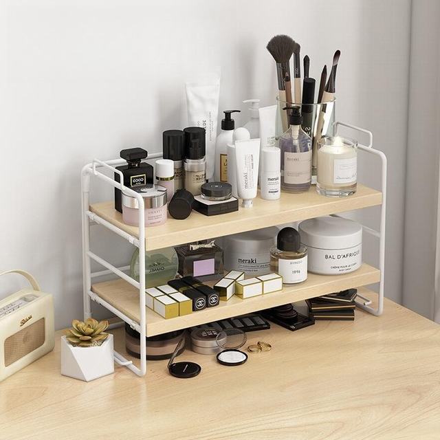 ラック棚 デスク上 ミニラック 卓上ラック 机上ラック 収納棚 ラック 北欧 オープンラック アイアン 置棚 高さ調整 2段 ナチュラル板 白フレーム