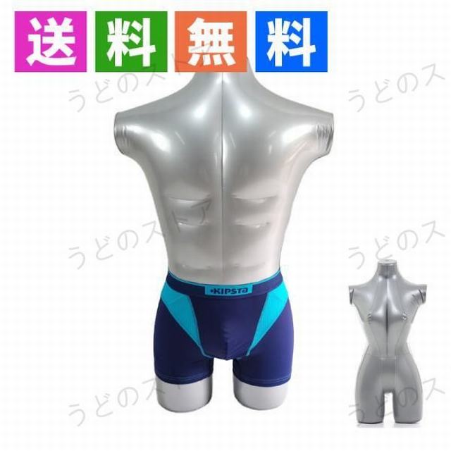 マネキン エアー 風船 PVCボディートルソー ディスプレイ ファッション 展示会 メンズ 上半身胸腿付き男性女性用 シルバー 空気入れ付き