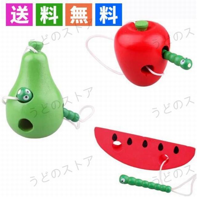 3個入り 木製 レース スレッディング おもちゃ リンゴ スイカ 梨迷路