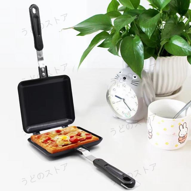 +自宅で手軽に外はカリカリ中はふっくらなホットサンドが作れます。両面焼きなのでひっくり返しも楽にできます。キャンプやアウトドアにもおすすめです。本体はフッ素樹脂加工なのでお手入れ簡単です。+サイズ(cm):幅約35×奥行約15×高さ約3.5cm+材質:アルミニウム合金、フッ素コーティング 開口角度:110°+重量:約500g+スレンジ と ヒーターは対応しませんのでご注意ください+直火式でアウトドアにも活用できるます。焼き加減を自分好みに調整出来るのでオススメです。パンと具材を挟んで焼くだけ!と簡単で、おうちで簡単にホットサンドが作れると評判です。フッ素樹脂加工でこびりつきにくく、お手入れも簡単です。+海外インポート品なので,国産商品より細かいところが不完璧の場合がございますが。商品の使用には問題がございません。上記の点で返品?交換の理由になりませんので,ご理解の上ご購入ください。