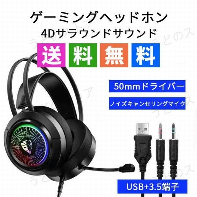 インピーダンス32Ω再生周波数帯域20Hz?20kHzケーブル長さ:2.2m±0.1ドライバー50mmダイナミック 感度102±3DBイヤーパッド材質:レザー+低反弾力スポンジ端子:3.5mm USB高低音ウーハー内蔵LED作業電流DC5V±5%マイク感度: -38±3dBマイクインピーダンス 2.2KΩ【7.1ch 4Dサラウンドサウンド】7.1chサラウンドサウンドを実現するために50MMドライバーを装備した高度なゲーミングヘッドセットです。衝撃的なサウンドを提供します。【ノイズキャンセリングマイク】ノイズキャンセリングマイクで、最適でクリアな音を引き出す事ができます。360度回転するマイクを採用しているので、高精度かつクリアな音で仲間との明瞭な会話が可能です。他のプレイヤーとコミュニケーションを取らずに自分だけの時間を楽しみたい場合は、スイッチを操作しマイクをオフにすることもできます。海外インポート品なので,国産商品より細かいところが不完璧の場合がございますが。商品の使用には問題がございません。上記の点で返品?交換の理由になりませんので,ご理解の上ご購入ください。