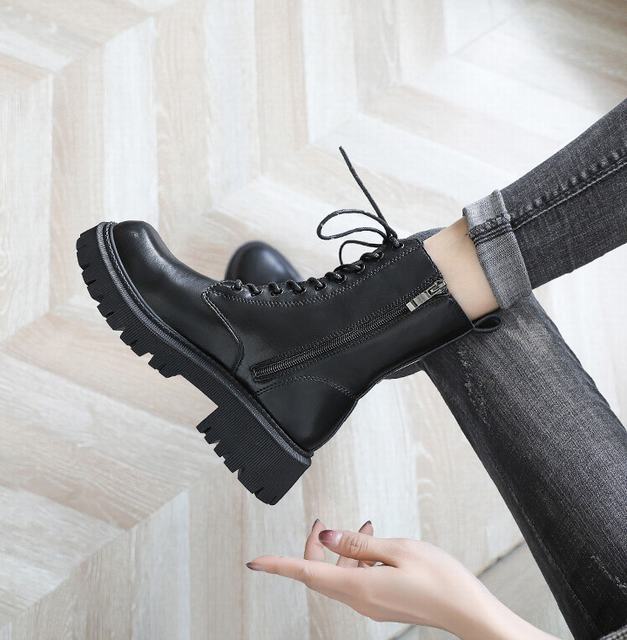 商品の説明素材:合成皮革長時間はけて歩きやすいショートブーツ。ちょっぴり厚底で約4.5cmのローヒールな上に、柔らかいインソールと屈曲性の高いゴムの靴底で、たくさん歩いても疲れない!生地の質感は高級感が出る、防水、防風、クリーンに簡単! 編みあげブーツなのに、靴紐をほどいたり結んだりせずに、楽に脱ぎ履きできる軽い婦人靴です。ブーツの側面にジッパーがあります。さらに、ジッパーなので脱ぎ履きが簡単。靴の口はひもの設計方式を採用して、靴のひもは十分に長くて、自分の習慣によって、緩みの程度を調整することができます。