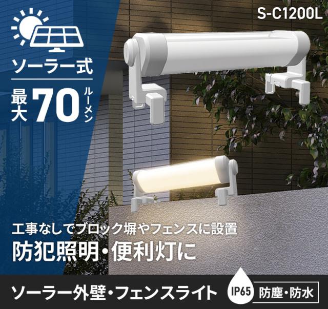 【55%引き】 防犯ライト ムサシ ソーラー外壁・フェンスライト(S-C1200L) ソーラーライト センサーライト 屋外 ブロック塀 フェンス 常夜灯 防犯 太陽光 配線不要 工事不要 ソーラー発電 照明 電球色 暖色灯 白色灯 LED 玄関灯 門灯 電気代0円 エクステリア