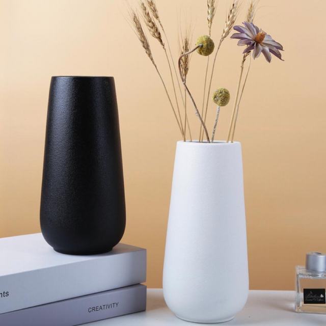 花瓶 おしゃれ 陶器 北欧 シンプル 造花 フラワーベース 大きいサイズ 20cm ブラック