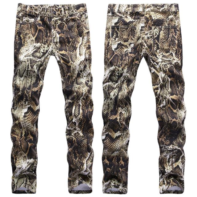 メンズ ボトムス パンツ デニムズボン スネークプリント ヘビ柄 スリム カジュアル 個性的