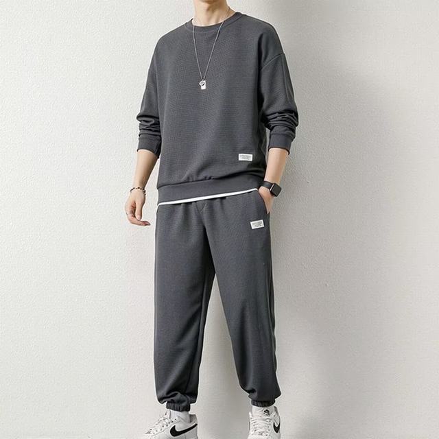メンズ セットアップ 長袖 ロングパンツ スウェットパンツ ウエストゴム ボトムス カジュアル おしゃれ かっこいい ダークグレー