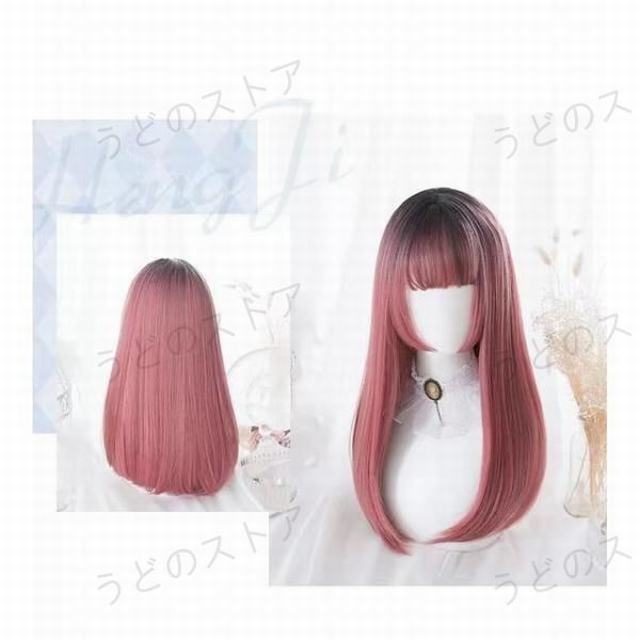 フルウィッグ ピンク ストレート ロング ゴスロリ ロリータ かつら エクステ コスプレウィッグ ウィッグ コスプレ