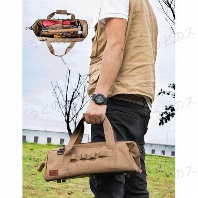 【サイズ】:掲載写真をご参照ください。【材 質】オックスフォード生地こちらはペグバッグのみになります。他の付属品はございません。大容量のペグ収納ケースです。設営時に必要なものをまとめて収納できます。ソロキャンからファミキャンまで幅広くお使いいただけます。一緒にハンマーや斧等設営時に使用するギアがまとめて収納可能で内側にポケットもあるのでロープ等小さい物もバラバラにならず収納できます。しっかりとした作りで重量のある鍛造ペグでも問題なく収納できます。使わない時は畳んで薄くコンパクトになりスペースを取りません。底面は防水仕様となっているので、濡れた地面でも問題なしです。中ではポケットが付いており小物を収納することができます。アウトドアグッズ、工具等をまとめて収納できます。