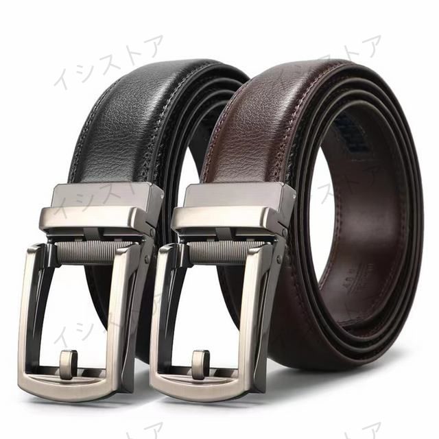 メンズベルト 本革ベルト オートロック式ベルト ワンタッチ ベルト シンプル フォーマル 長さ調整可 125cm