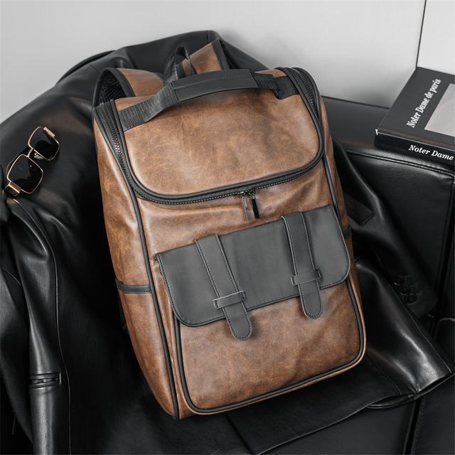 ビジネスリュック レトロ風 大容量 A4サイズ pu革 サイドポケット リュックサック バックパック バイク用 丈夫 オシャレ