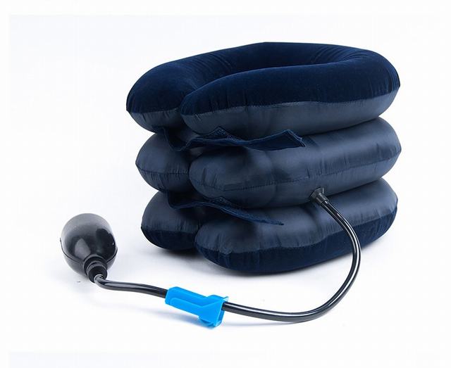 首サポーター ネックサポーター エアーストレッチャー ストレッチグッズ 枕 フリーサイズ エアー首サポーター 頸椎 肩凝り 調整可 ネイビー